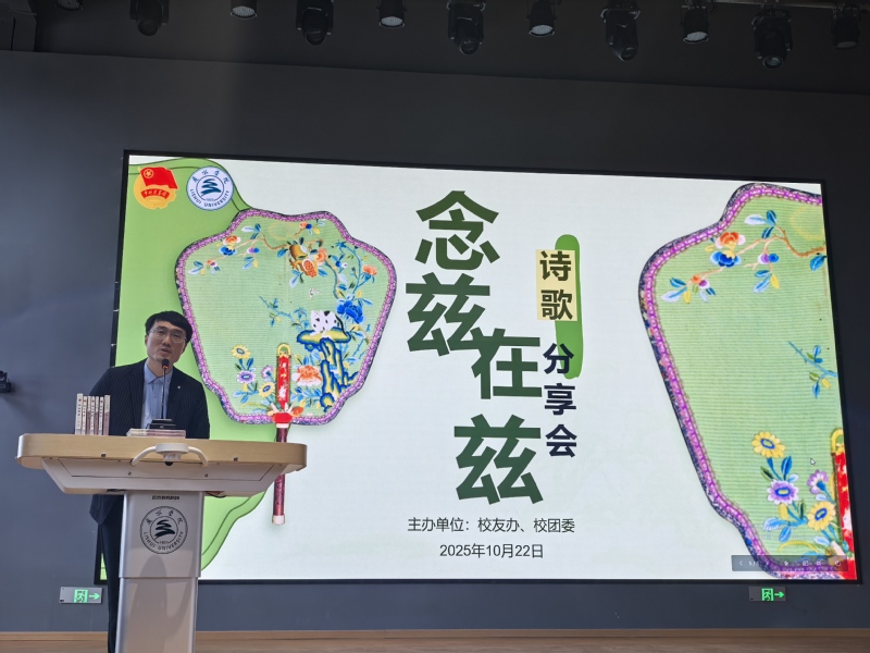 在经验分享环节中,俞昊杰结合自身创作历程,特别提到“诗歌的创作就是在生活中吸收灵感,边写边进步的”,鼓励同学们从日常中捕捉诗意,通过持续练习不断精进。作为校友,俞昊杰还分享了自己在母校求学时的创作经历,让在场师生感受到校友与母校之间割舍不断的情感纽带。